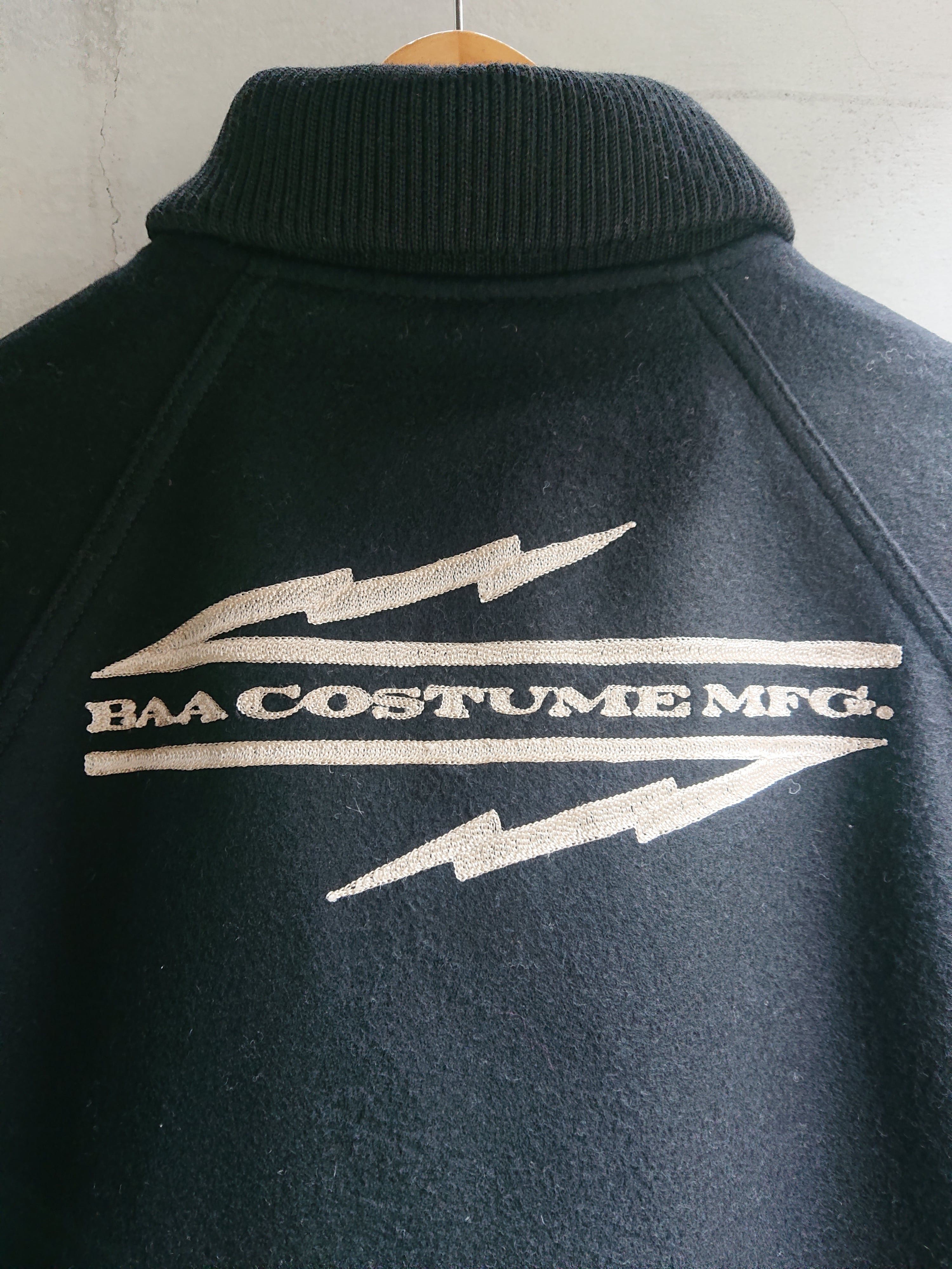 GENT-Xに別注させていただいたTHREE-QUARTER JACKET!!ショールカラーで胸元にはGENT-Xのワッペンがつき、背中にはBAA COSTUME MFGの刺繍が入ります。ボディ生地とリブは純国産ウール製(毛100%)を使用し、国内で一つ一つ丁寧に製作。刺繍は熟練の職人がBAAのデザインを手振りにて刺繍を施していただいたスペシャルなジャケットとなります。